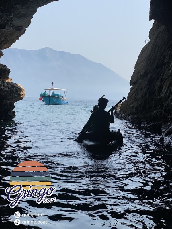 Gringo Boat bietet Fahrten vom Hafen von Budva in südlicher Richtung entlang der Riviera an. Die Route führt an den Klippen unterhalb der Altstadt vorbei und erreicht Kamenovo – einen geschützten Kieselstrand zwischen Bečići und Przno – wo ein Badestopp eingeplant ist. Das Boot setzt seinen Kurs über das Przno-Kap fort und bietet dabei Ausblicke auf das Sveti Stefan Inseldorf vom Wasser aus. Schnorchel-Ausrüstung ist an Bord verfügbar.