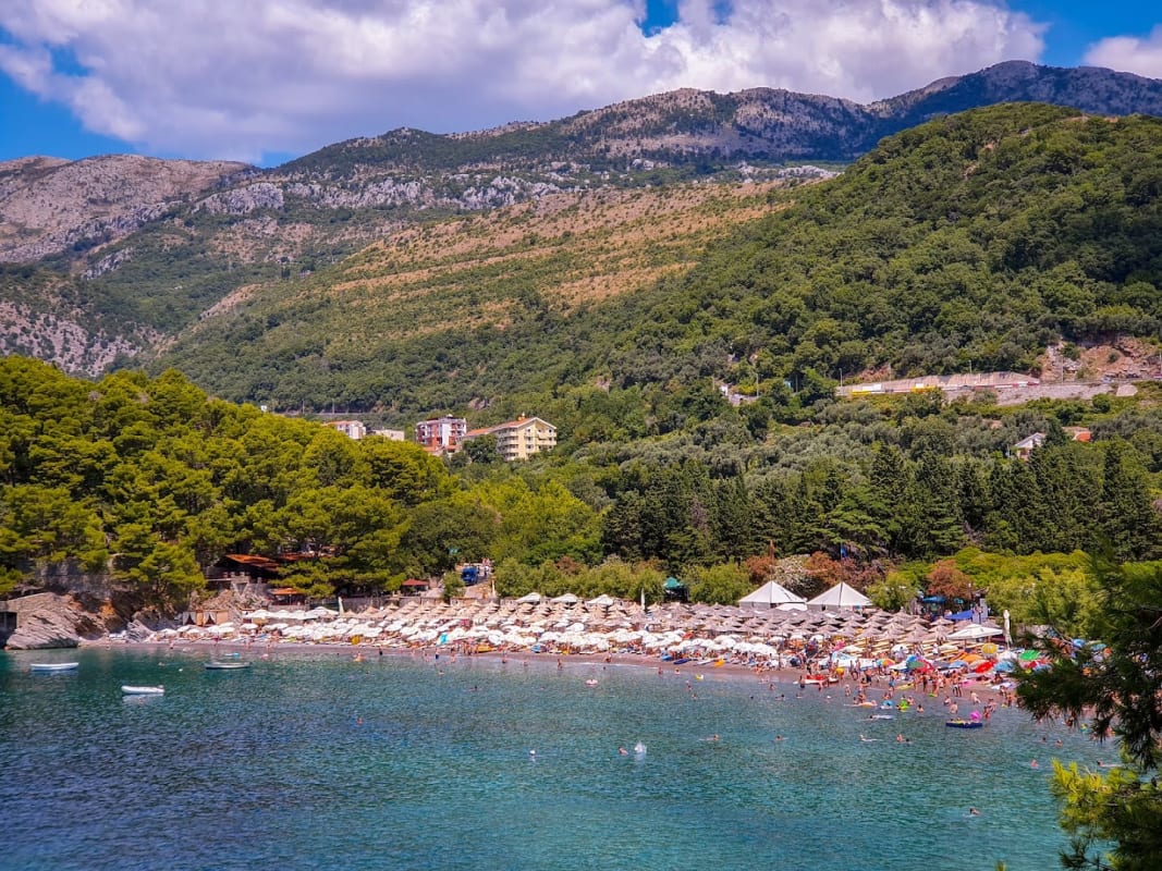 Ein 220 Meter langer, windgeschützter Strand am südlichen Ende von Petrovac, ruhiger als der Hauptstadtstrand.