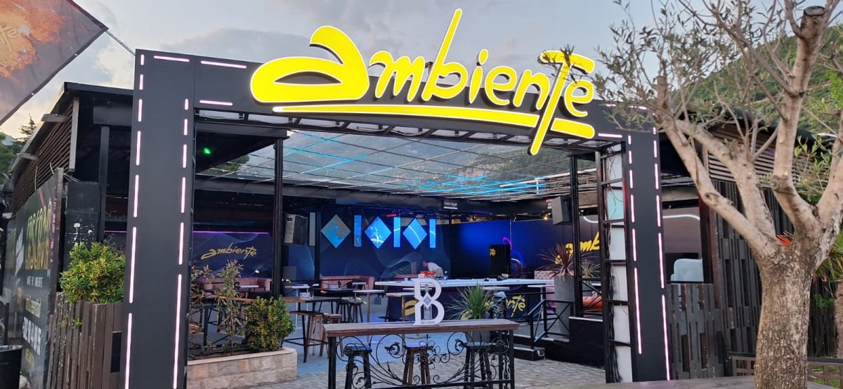 Ambiente ist eine Café-Bar im Mimoza, 67 Slovenska Obala — direkt an der Hauptstrandpromenade. Das Format ist eine Freiluft-Abendbar statt eines vollständigen Restaurants, öffnet um 21:30 Uhr und läuft bis 1 Uhr morgens. Getränke, Kaffee und eine legere Atmosphäre mit Blick auf den Strand. Nicht zu verwechseln mit Night Club Ambiente, das ein separates Lokal auf der gleichen Straße ist.