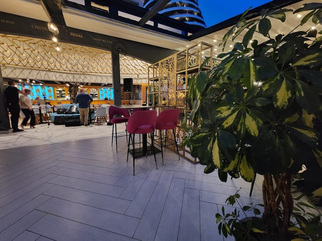 Sole Mio bietet einen ganztägigen Service von seiner Position an der Slovenska Obala am südlichen Ende der Uferpromenade. Die Speisekarte umfasst Frühstück und Brunch bis zu Speisen am späten Abend mit mediterranen Gerichten, kleinen Tellern und schnellen Häppchen. Vegane und vegetarische Optionen sind aufgelistet. Die Bar hat eine umfangreiche Weinkarte, Fassbier, Cocktails und Spirituosen. Live-Musik spielt während des Abendservice, und ein Bildschirm zeigt Sport. Die Sitzplätze im Freien blicken auf das Wasser. Hunde sind sowohl drinnen als auch auf der Terrasse erlaubt, was für Restaurants in diesem Bereich ungewöhnlich ist. Kostenlose Parkplätze sind auf einem nahegelegenen Platz und auf der Straße vorhanden. Hochstühle werden zur Verfügung gestellt. Der Eingang und die Sitzbereiche sind rollstuhlgerecht. Reservierungen werden angenommen.