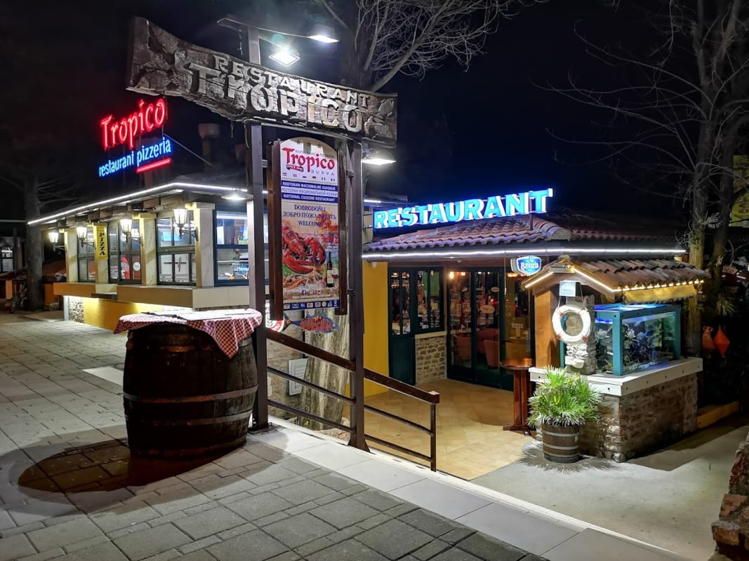 Tropico serviert Pizza, Meeresfrüchte und Desserts von einem Ort direkt am Wasser mit Meerblick. Die Speisekarte reicht von Frühstück bis spät nachts und umfasst Halal-Gerichte, Bio-Optionen und eine Salatbar neben dem Standard-Sortiment. Cocktails und Shisha werden am Tisch serviert. Die Bar bietet Bier, Wein und Spirituosen. Hunde sind auf der Terrasse willkommen. Hochstühle und ein Kindermenü für Familien. Catering für private Veranstaltungen ist verfügbar. Reservierungen werden angenommen. Die Lage direkt am Wasser bietet einfacheres Parken als die Abschnitte näher zur Altstadt, mit meist verfügbaren Plätzen den ganzen Tag über.